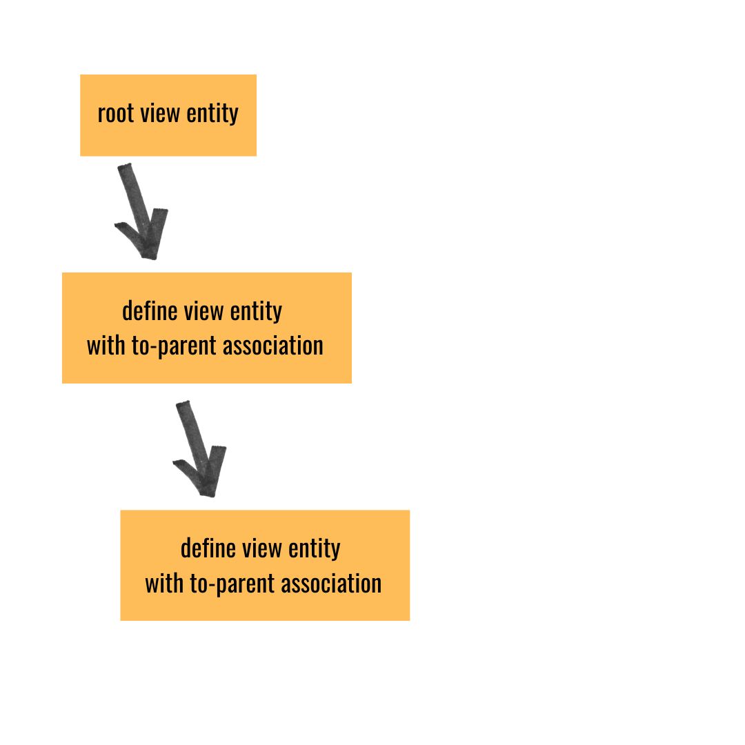Damit ein Business Object auch hierarchisch aufgebaut werden kann, kommt define view entity with to-parent association ins Spiel. Diese Variante verhält sich wie eine normale View Entity, enthält jedoch eine feste Assoziation zum Parent. Sie wird typischerweise für Child-Entities innerhalb eines Business Object verwendet, etwa bei Auftragskopf, Auftragsposition und Lieferposition.